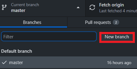 Open Git > New Branch from the top menu, and enter a name for the new branch.