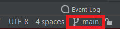 If a different branch name is displayed, switch to main by opening the Branches panel (click on